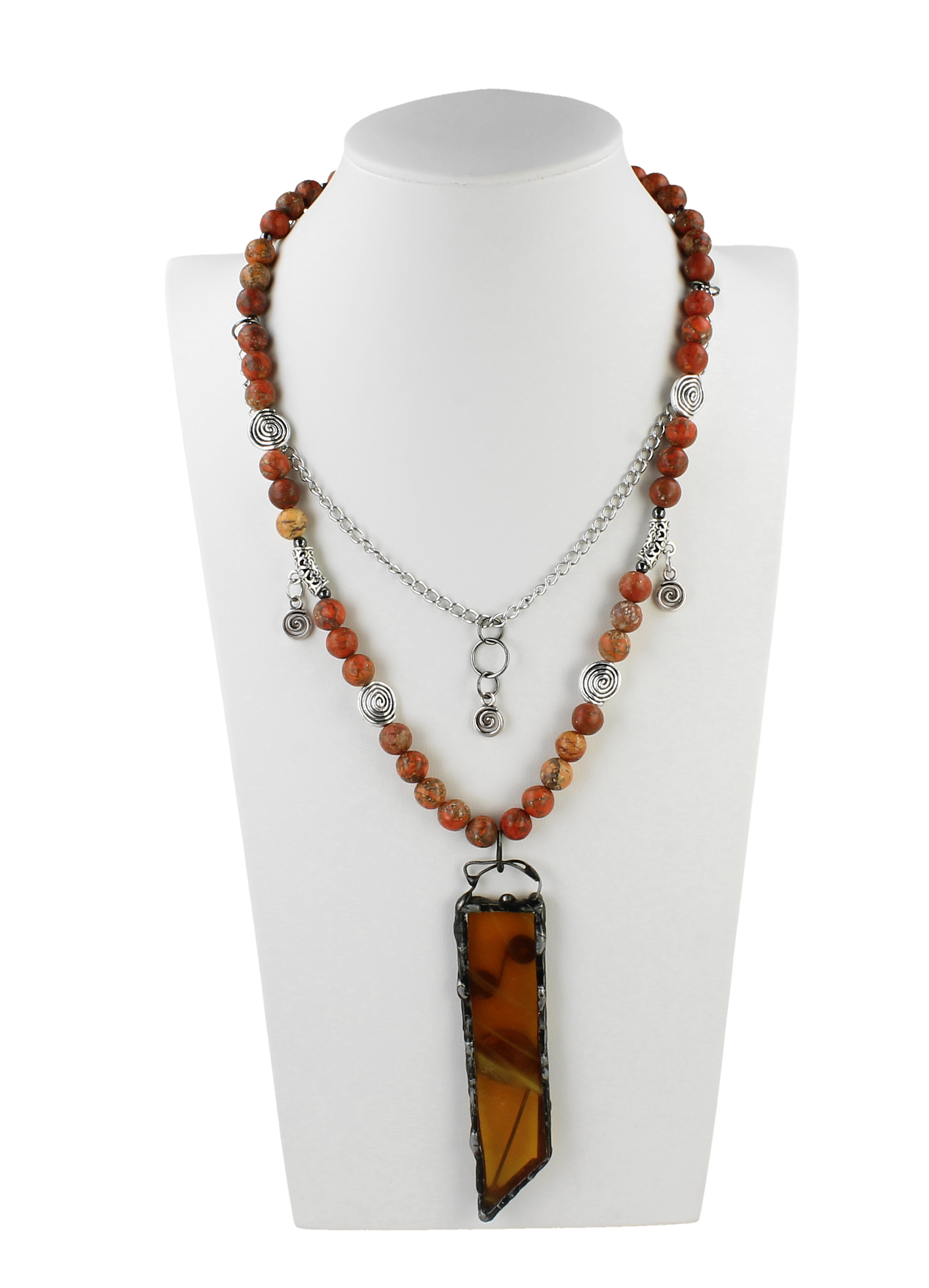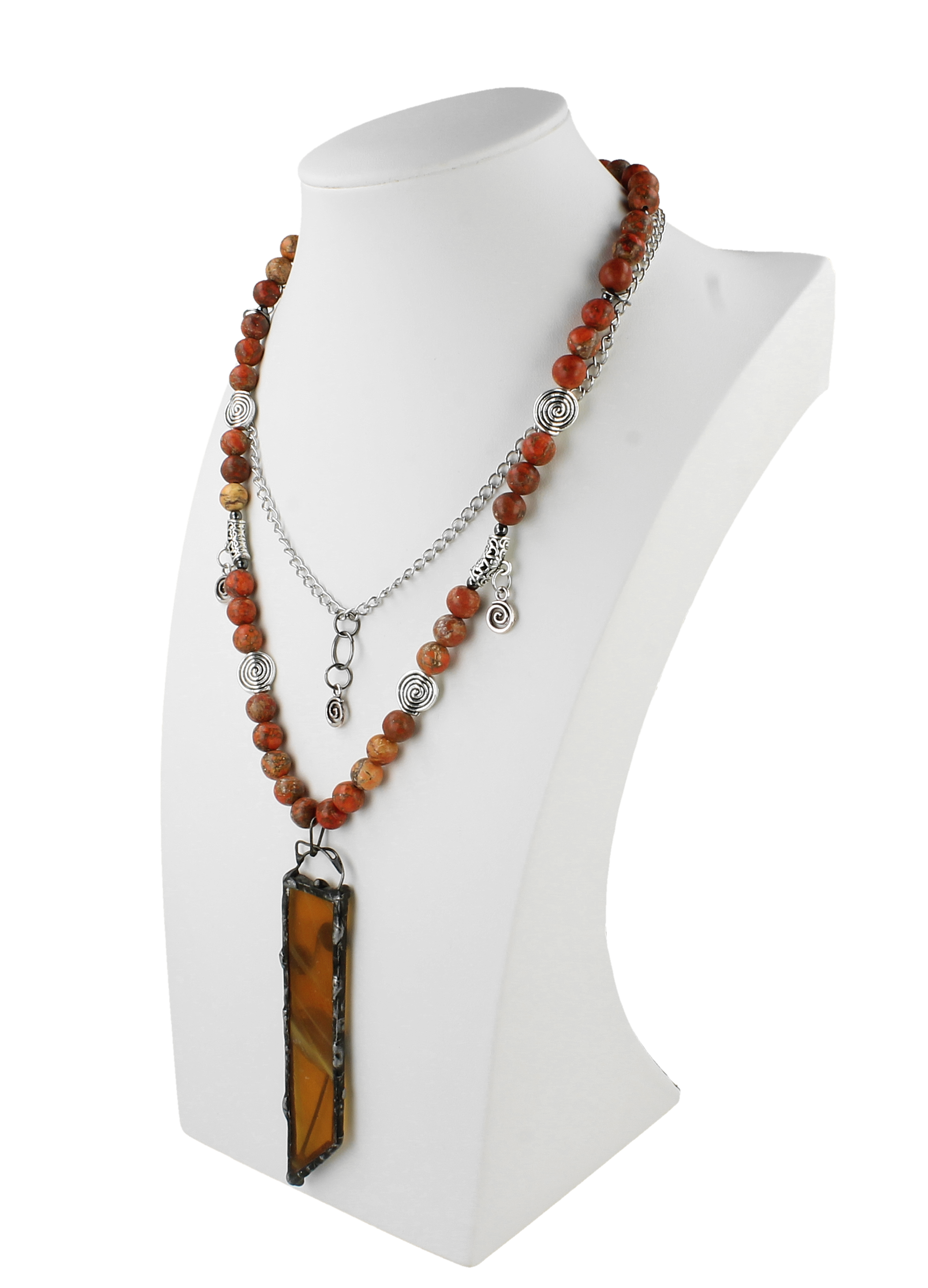 Naszyjnik handmade z jaspisu – szkło artystyczne w oprawie miedź/cyna
